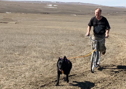 | scooter dog dogs scooters kickbike bike kick kickbicycle bicycle foot sled dog pulling |