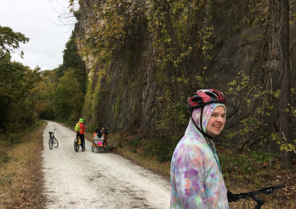 Katy trail bluffs rails to trail bicycle dog buddy trailer training |