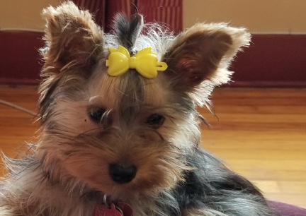 yorkie puppy top knot bow barette yorkshire hair cute do |
