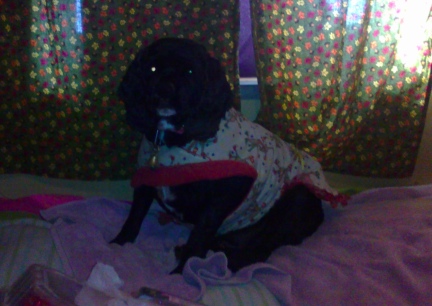 Joy in Christmas Coat on our bed 2013-12-19 - 2013-12-19 15:01:36 |